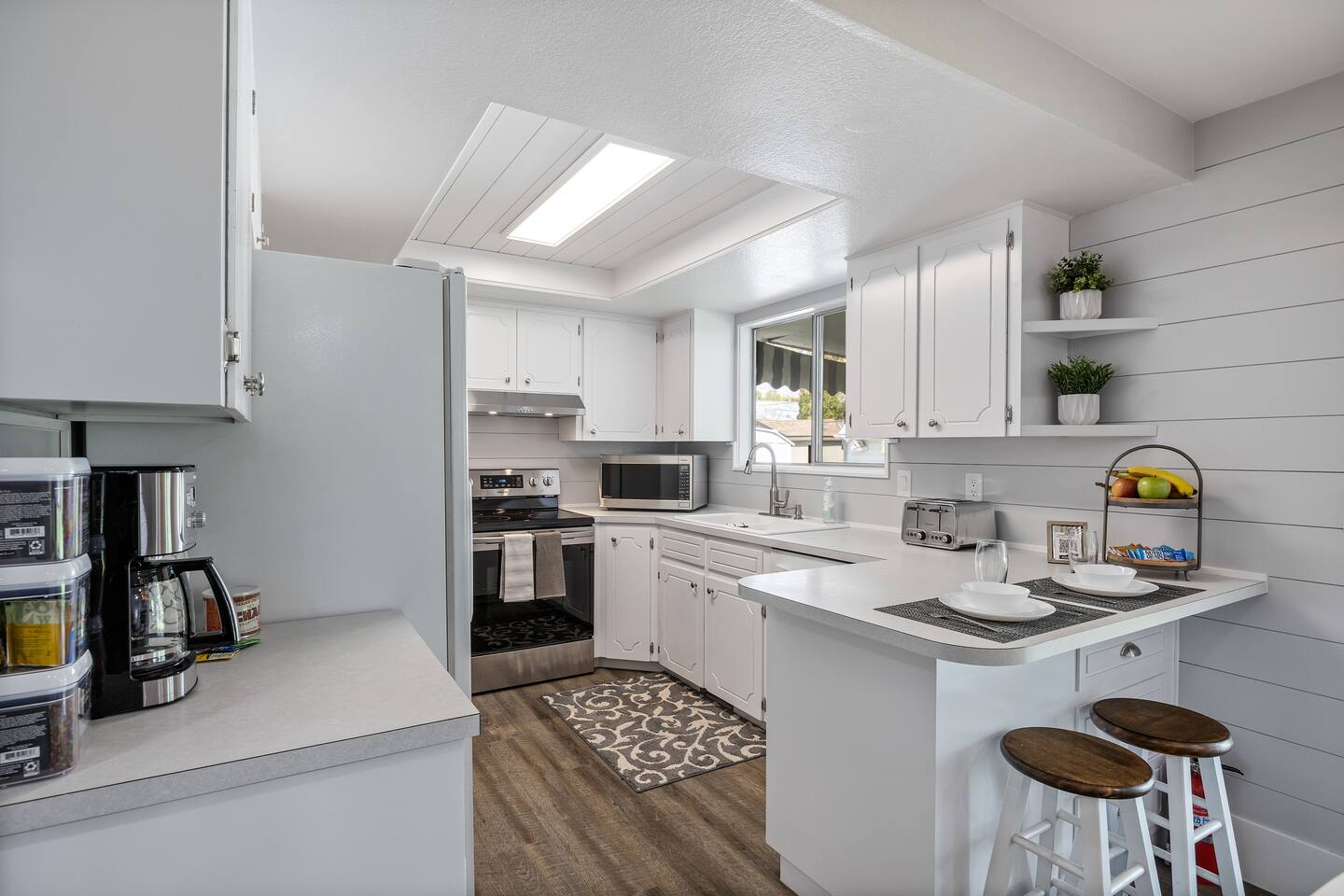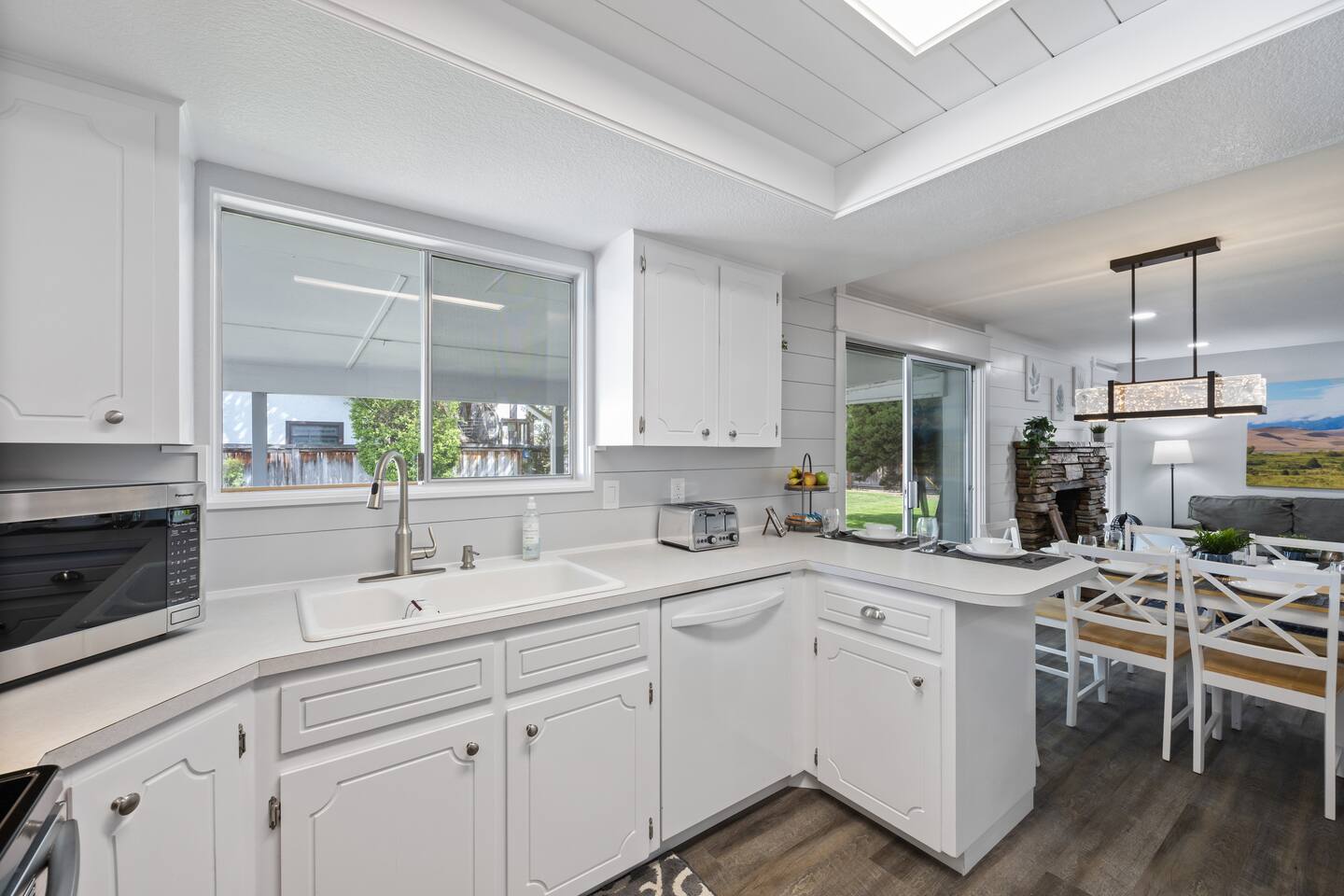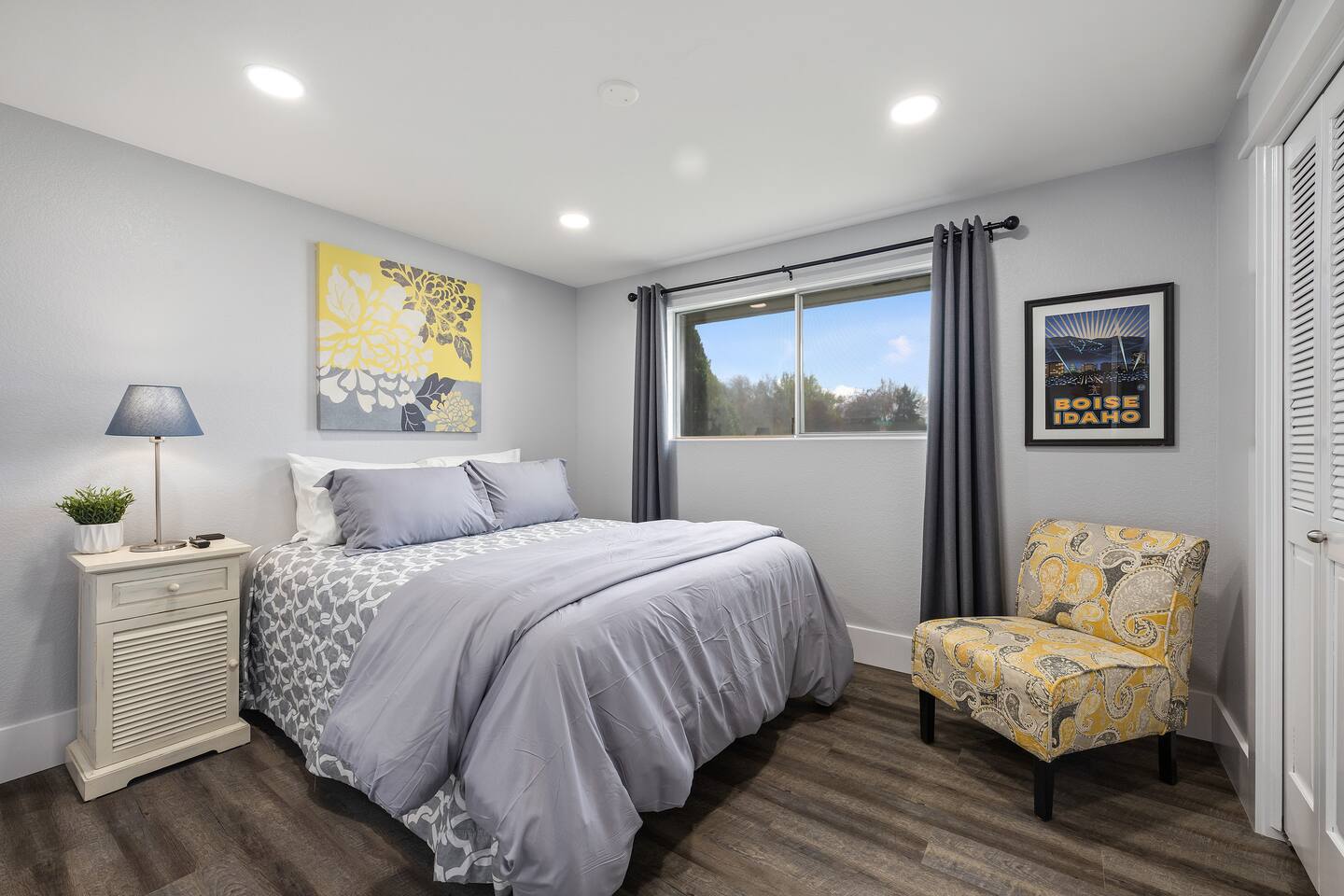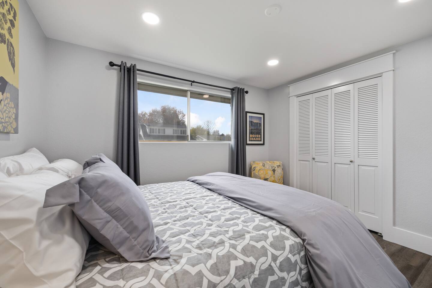About this space Private home in Boise/Meridian that has recently been remodeled Looking for the Boise experience as well as the emerging Meridian experience? This cozy, completely remodeled, and fully furnished private home with large trees and two parks in the area is ideal for your family or group. We enjoy having guests in this peaceful, clean, and bright suburban getaway. We reside nearby and are typically available in person or through the short-term rental app you used to secure your stay. The Skyline Retreat is perfectly located, approximately 10 minutes from Meridian Village Shopping Center and 12 minutes from Downtown Boise and Boise State University. This location has it all, from the neighboring lovely greenbelt along the Boise River to the iconic Boise restaurants and breweries to the unique shopping experiences. This property is bright, inviting, and comfortable, with full access to everything, including a large flat screen with surround sound, front load washer and dryer, fully equipped kitchen, and separate workspaces. There is a lovely spacious back yard with a large patio with outdoor table and furniture. Our House: Shiplap details can be found throughout this bright, fresh, newly remodeled home, which is entirely on one floor and has a split bedroom plan. A recently renovated master suite with its own ensuite, a comfortable King-sized bed, and a NEW high-quality mattress. The other two recently renovated bedrooms contain NEW queen mattresses as well as a common bathroom. Up front is a spacious, light living area with a roomy sectional and a large flat screen with surround sound. Guests are encouraged to access their personal streaming accounts (Netflix, Hulu, etc.) You are welcome to use our Wii gaming console and bring your own games. The kitchen is fully stocked with basic pots, pans, casserole dishes, plates, bowls, cups, silverware, stemless wine glasses, margarita glasses and other utensils. We also have basic spices. Side by side fridge with ice and filtered water. We also have a filtering pitcher of water inside the fridge for your use. There is a coffee maker, electric tea pot, toaster, smoothie blender dining table and eating counter. Just off the kitchen there is also a separate open family room with another flat screen TV, a couch, love seat and chairs to visit. The fireplace is non-functioning. Please let us know if you have any other questions regarding this home, your stay, or for special inquiries, and requests. We are absolutely delighted to accommodate anything we can and create a 5 star experience for you. Home features: New flooring throughout. Entire home freshly painted in 2022 Large front-loading washer and dryer. 2 Flatscreen TVs. High Speed Internet Powerful Wi-Fi. Fully stocked kitchen. Spacious, fenced back yard. Large Patio with table and chairs. Living room has a large sectional couch 2 Bedrooms have a workspace One bedroom has a bed capable of raising and lowering the head at the push of a button. Parking Parking is available for 2 cars in the driveway with extra parking on the street. Uber and Lyft are also great options for this area! Guests will not have any access to the garage at this time. Space Includes: • Fully equipped kitchen with complimentary coffee, dishes, cookware, spices, and utensils. • Breakfast bar for extra seating. • Dining Room seating for 6. • Bathrooms with mirrors, quality towels, and supplied quality toiletries. • Bedroom w/ new Memory Foam mattresses, quality sheets, comforters, throws, and multiple styles of pillows to choose from. • 4K smart TVs, and free ultra-high-speed wifi access! *due to possible provider circumstances out of our control, wifi quality and access can not be guaranteed. • Fenced large yard. • Guests have no access to the Garage. •The fireplace is not operational for guests at this time. • Exterior mounted security cameras present outside the home at the entrance to the front door, on all sides of property for added guest security. These cameras will be on and recording video and audio 24 hours a day, 365 days a year. Close to places such as: 2 Parks in the neighborhood with playground, basketball court picnic tables and charcoal barbecue. (See pictures) The Boise River Boise Greenbelt (Along the Boise River for Biking and Walking) Downtown Boise (Known for its great shops and Dining) Zoo Boise Dining Museums The Boise Town Square Mall The Boise Aquarium The Village Shopping Center in Meridian (shopping, movies, bowling etc.) Pastry Perfection Bakery Grocery Stores and Pharmacy Post Office Surrounding Areas Bogus Basin Ski Resort 23 Miles McCall Resort Town and Payette Lake a little over 2 hours away. Cascade Idaho and Lake is about 1 ½ hours away. Garden Valley 1 hour Idaho City 1 hour Lucky Peak Lake 28 minutes Sun Valley Idaho is a about 2 hours and 45 min away. Cascade, Garden Valley and McCall have beautiful, forested, scenic rides there and back. If you have any questions about the area or surrounding areas, please feel free to ask.